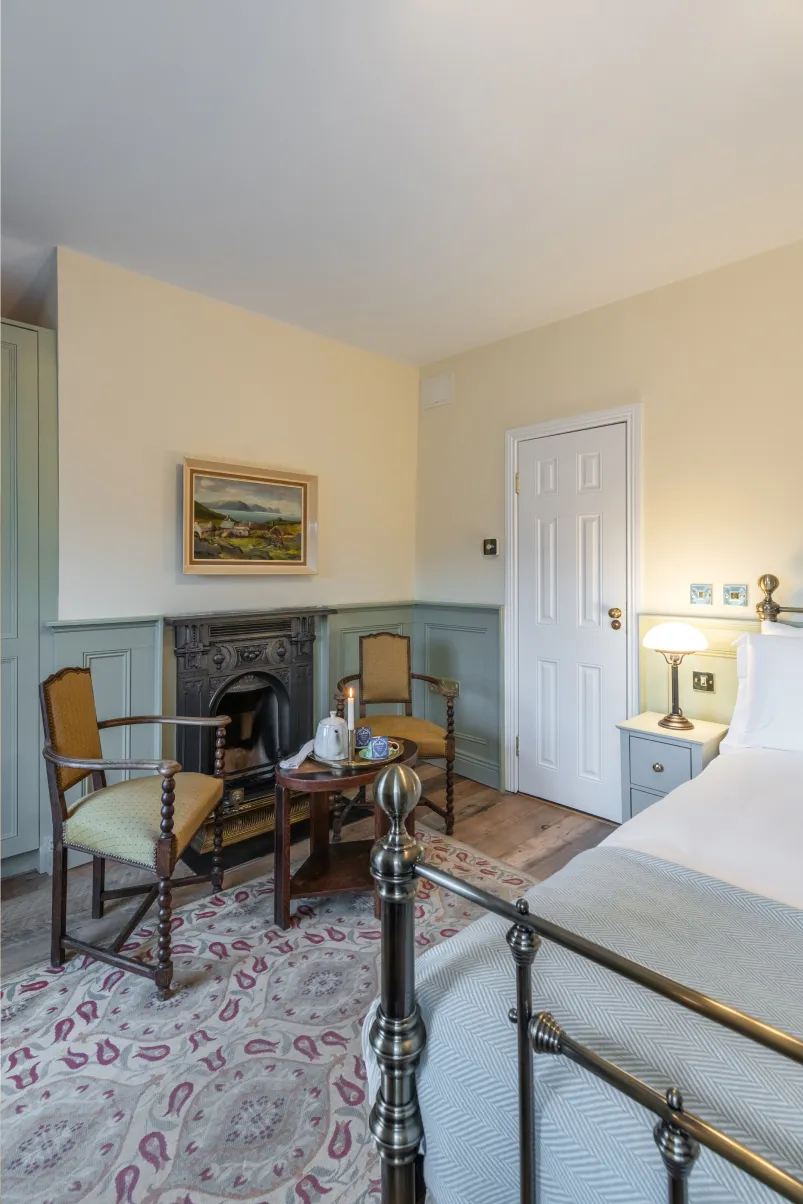 The O’Connell Room offers a refined and relaxed setting with a strong sense of place. Soft, heritage-inspired colours, traditional panelling and elegant brass details give the room a calm, timeless character.